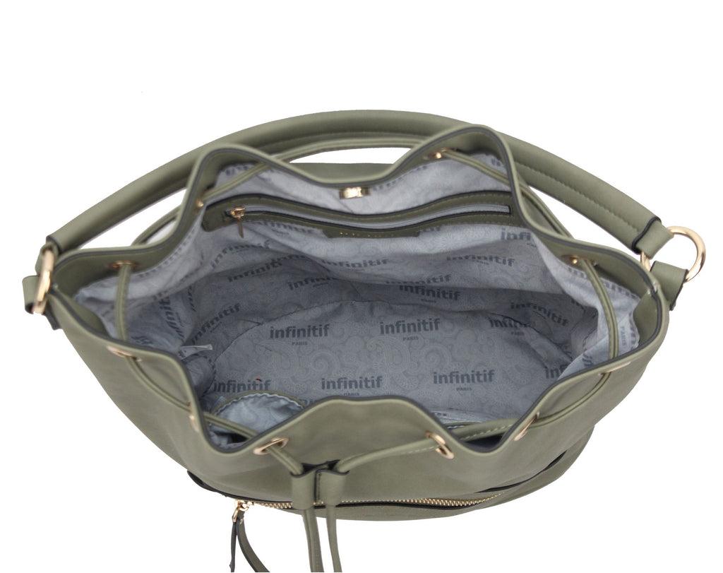 Célébrez le mélange parfait de style et de praticité avec ce sac sceau à anse en PVC ROBINETTE. Doté d'une bandoulière réglable et amovible pour un port personnalisé, de deux poches intérieures astucieusement conçues, dont une zippée, et d'une fermeture par cordon de serrage, il offre une organisation optimale. La poche avant zippée ajoute une touche de modernité à cet accessoire tendance pour vos besoins quotidiens.