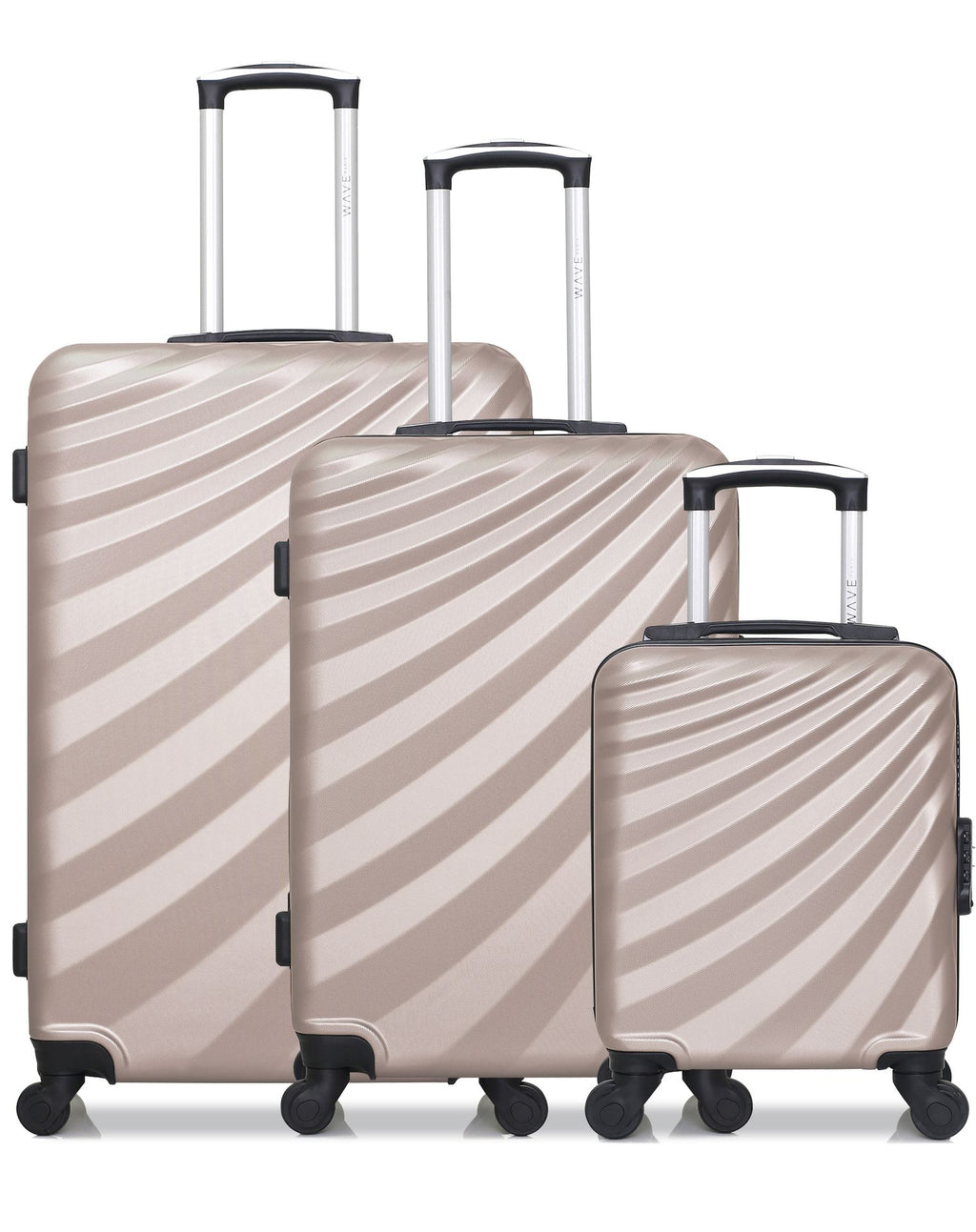 Nous attirons votre attention lors de la réception de votre colis. L’ensemble de votre set de valises sera contenu dans la grande valise, chaque format étant emboité les uns dans les autres.