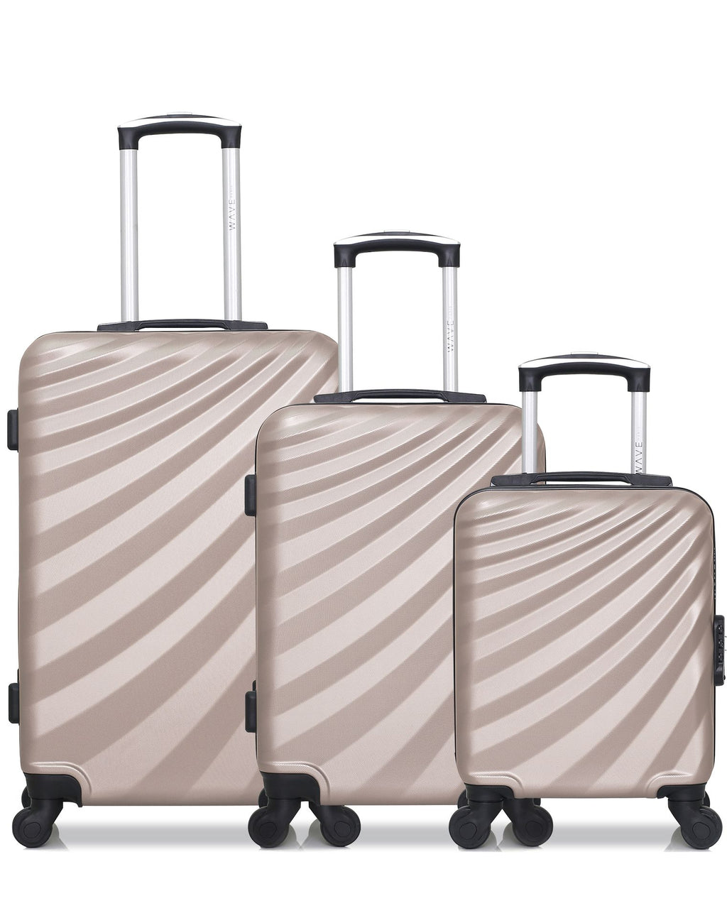 Nous attirons votre attention lors de la réception de votre colis. L’ensemble de votre set de valises sera contenu dans la grande valise, chaque format étant emboité les uns dans les autres.
